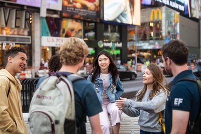 Intercâmbio de três semanas de curso geral na EF New York, nos Estados Unidos, com 26 aulas semanais de 40 minutos, complementado por uma semana adicional de experiência cultural e turística em Orlando visitando os parques da Disney e Universal. Os alunos ficam hospedados em quartos compartilhados no Campus EF, com pensão completa (três refeições por dia).